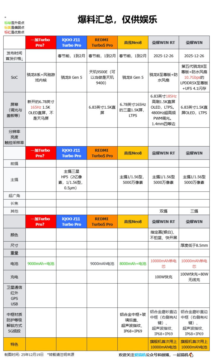 一加Turbo系列、REDMI Turbo5系列、iQOO Z11 Turbo系列、真我Neo8、荣耀Power2,应该王人是春节前就会发布。