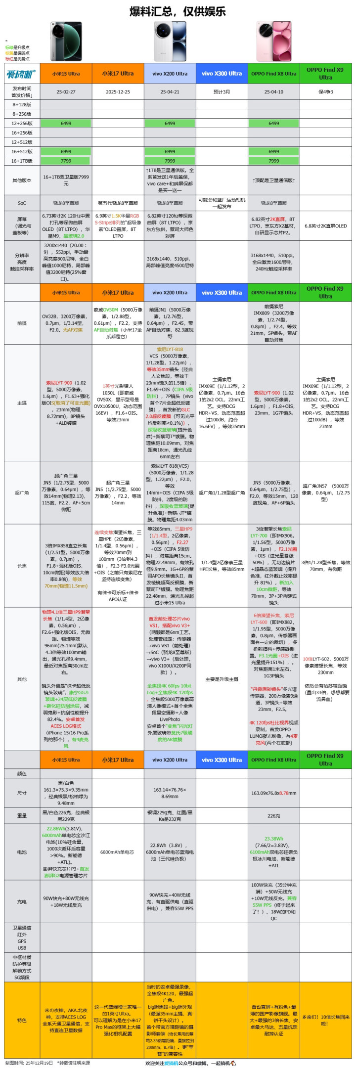 另外还有OPPO Find N6、Find X9s、荣耀Magic8 mini/Ultra、REDMI K90至尊版、iQOO小屏机和中屏机的爆料,就不复读了,径直看表↑。